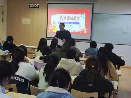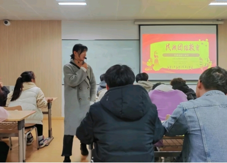 党的二十大报告提出:以铸牢中华民族共同体意识为主线,坚定不移走中国特色解决民族问题的正确道路,坚持和完善民族区域自治制度,加强和改进党的民族工作,全面推进民族团结进步事业。为了不断巩固中华民族共同体思想基础,引导广大学生树立民族团结意识,树立正确的宗教观,人文与国际教育学院于2023年11月开展了“民族团结一家亲”主题教育活动。 柴成华老师就如何维护民族团结、青年大学生所肩负的重任进行总结阐述。青年大学生要高举中国特色社会主义伟大旗帜,大力推动民族关系持续稳定健康全面发展,不断开创促进民族团结进步、实现共同繁荣发展的新局面,为实现中华民族伟大复兴的中国梦作出贡献。