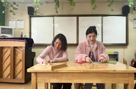 2024年1月10日下午,为检验参训教师对于蒙台梭利教具操作方法的掌握情况,学前教育系参训教师在1204教室进行了蒙台梭利教具操作的考核。