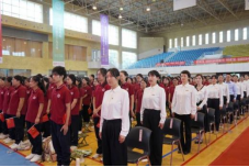 西安培华学院国旗护卫队托举着鲜艳的五星红旗,迈着坚定的步伐步入典礼现场。全体师生庄严肃立、向国旗行注目礼、齐声唱响雄壮的《义勇军进行曲》。随着奏唱国歌结束,专属于1000余名新生的开学典礼拉开了序幕。