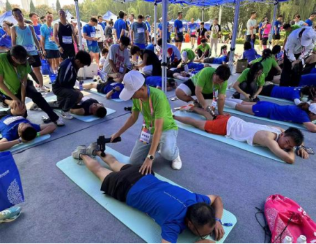 为确保比赛过程能够有序,顺利的进行,9月26日至28日,人文与国际教育学院志愿者服务队以高度的热情和责任感,全身心投入到赛事的志愿服务工作中。本次志愿服务队由共有60余名志愿者组成,主要承担起拱门及分区人墙、男女分道、起终点补给、 5-20KM补给站、赛后冰池、赛后修复等工作。