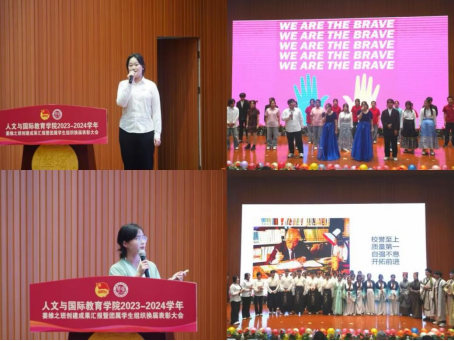 为进一步落实立德树人根本任务,营造爱党爱国爱校、学风浓厚的良好创建氛围,持续推进“姜维之班”创建工作走深走实,进一步增强团学组织的凝聚力、向心力,促进学生成长成才和学院高质量发展。2024年11月6日下午,人文与国际教育学院在维之图书馆报告厅召开2023-2024学年“姜维之班”创建成果汇报暨团属学生组织换届表彰大会。校团委书记董莹、校团委志愿服务工作部部长罗娜,学院院长梁蕊、党委书记南兵、教学副院长栾博强、党委副书记高嘉炜及各系主任、副主任、学业导师代表、全体辅导员、学生干部及团员青年代表400余人参加了本次大会。大会由学院团委书记朱林鹏主持。