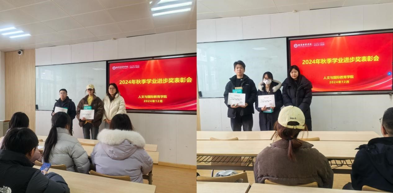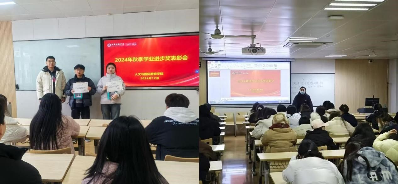 星光不问赶路人,岁月不负有心人。为总结成绩、表彰优秀、树立典型,营造更加浓厚的学习氛围,进一步弘扬优良学风,彰显榜样力量,引领青年学生健康成长成才。12月29日晚上,我院大二、大三年级辅导员利用班会有序开展了2024年秋季学业进步奖表彰会。