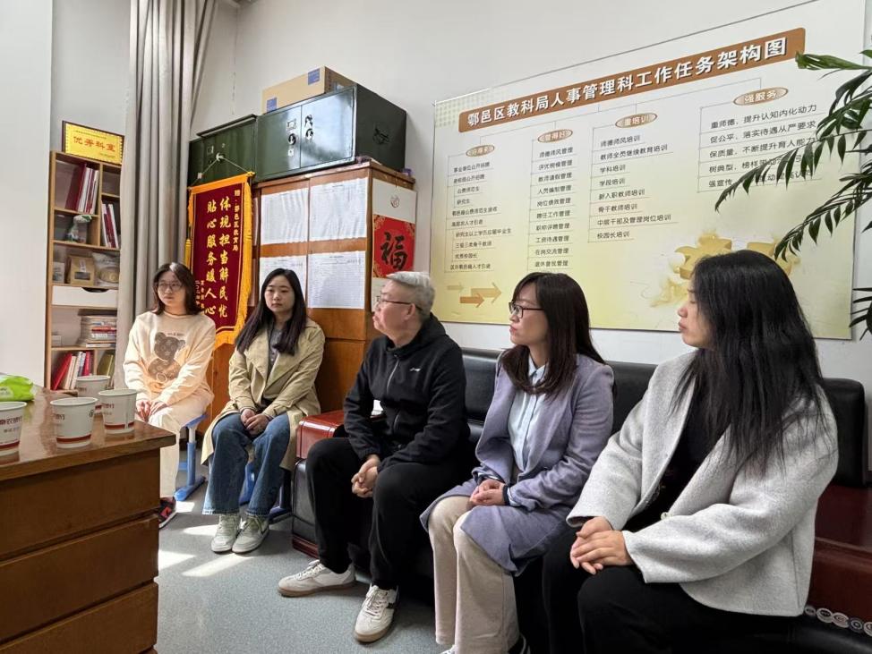 随后,考察团一行来到鄠邑区教育局,与教育局人事管理科负责人进行了交流。人事管理科科长对中文系实习生的表现给予高度评价,认为他们具备扎实的专业知识、较强的实践能力以及良好的职业素养。他表示,鄠邑区教育局高度重视与高校的合作,希望未来能与人文与国际教育学院建立长期的实习基地,为大学生提供更广阔的实践平台,同时也为鄠邑区基础教育的发展输送更多优质人才。