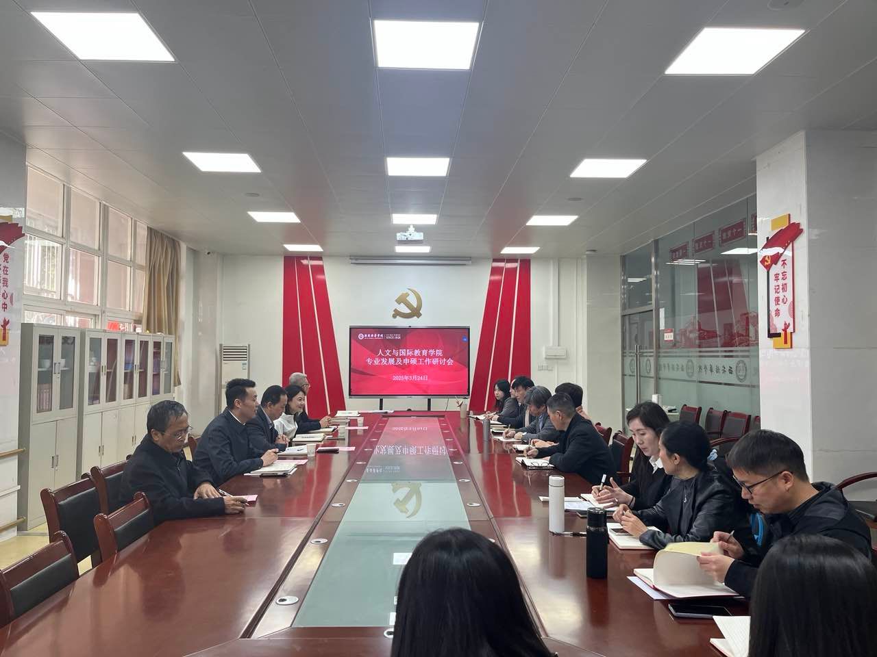 3月24日上午,学院于格物楼第四会议室召开了专业发展及申硕工作研讨会。常务副校长胡俊生、学院班子成员、各系主任副主任、课程负责人、综合办公室主任和党务行政干事参加会议。会议由院长梁蕊主持。