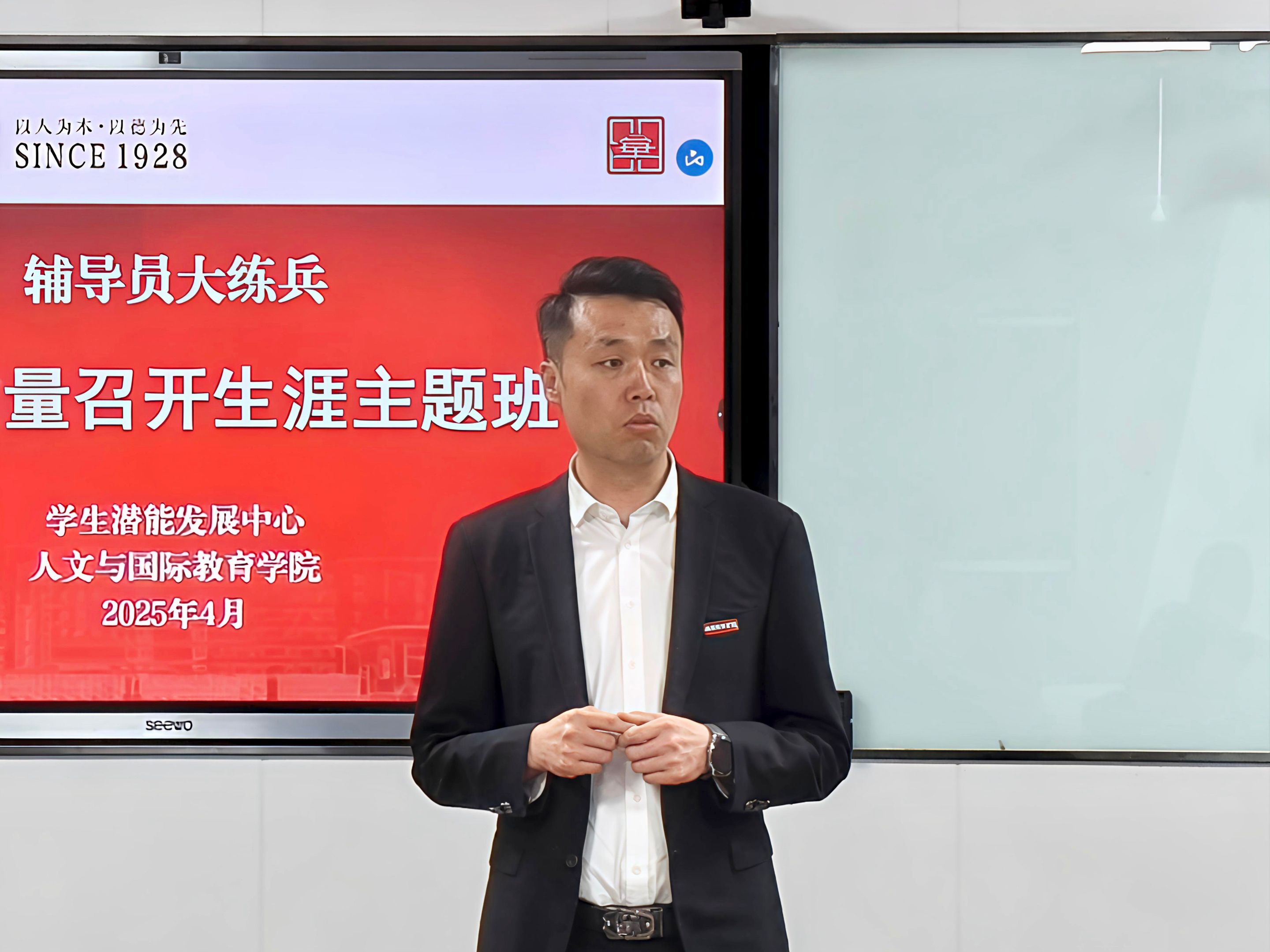 为有效提升辅导员召开班会质量,落实立德树人根本任务,以每周召开班会为契机,丰富班会的多元性、创新性,我院学生服务站于4月11日特邀请学生潜能发展中心主任韩赟老师在格物楼1207智慧教室为全体辅导员开展了一场旨在“如何高效召开生涯主题班会”的培训会。院党委书记兼副院长南兵以及全体辅导员参加。