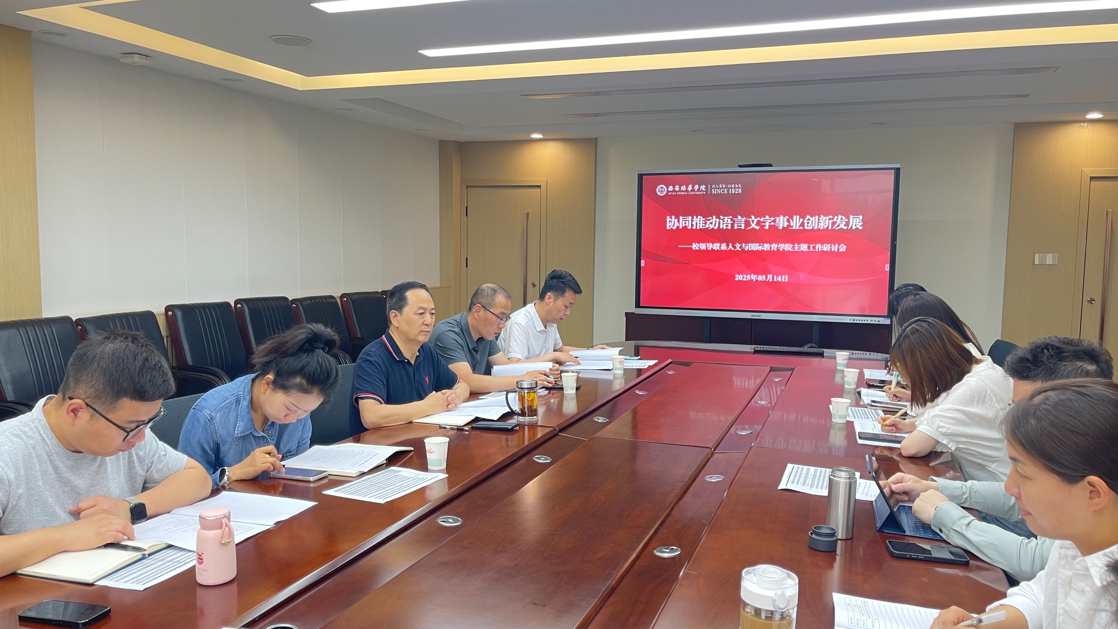 5月14日上午8点30分,题为 "协同推动语言文字事业创新发展" 的工作研讨会在明德楼第三会议室召开。常务副校长、语委办主任胡俊生教授主持会议,教务管理中心副主任王琳,校团委书记董莹及干事,人文与国际教育学院党委书记南兵、副书记高嘉炜、团委书记朱林鹏和主要干部参会。