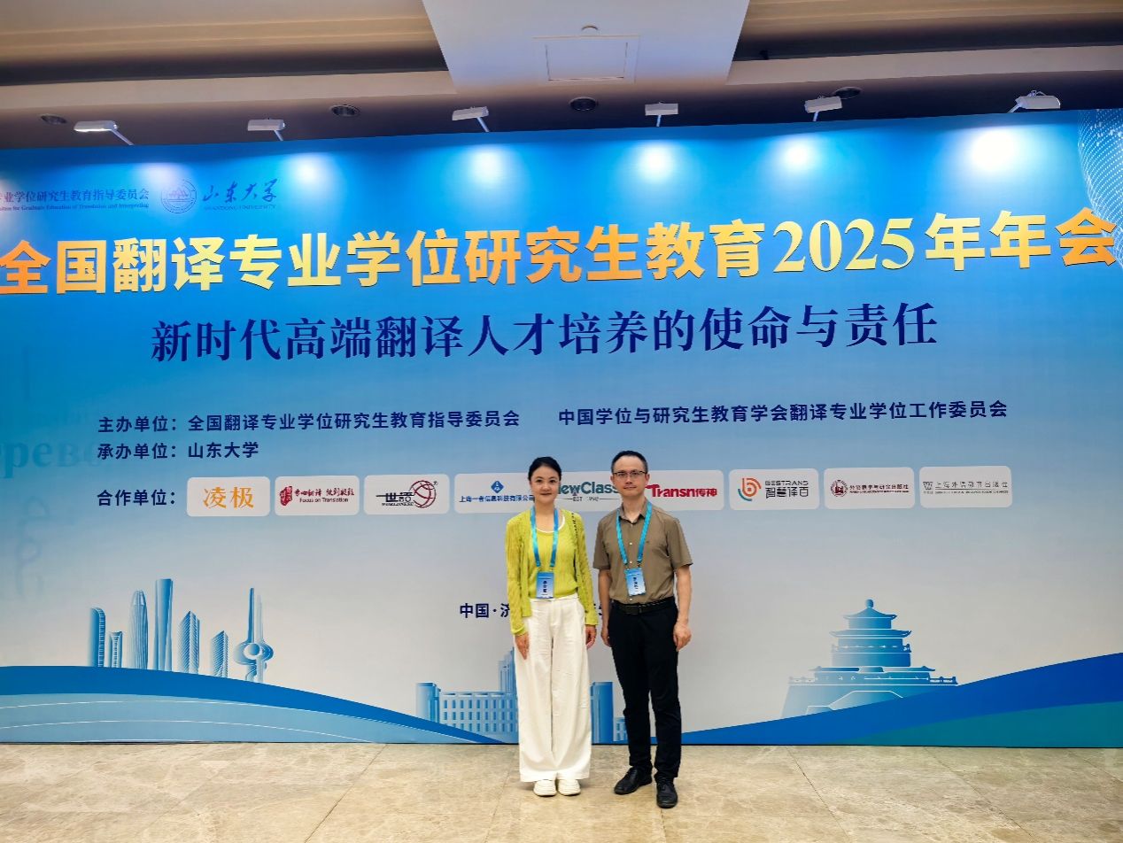 全国翻译专业学位研究生教育指导委员会2025年工作会议暨全国翻译专业学位研究生教育2025年年会于5月17日至18日在山东济南举办。中国外文局,北京外国语大学、上海外国语大学、广东外语外贸大学、西安外国语大学等国内所有开办翻译硕士专业学位(MTI)教育的院校均前来参会。我校人文与国际教育学院院长梁蕊和外语系副主任金培玉应邀参会。
