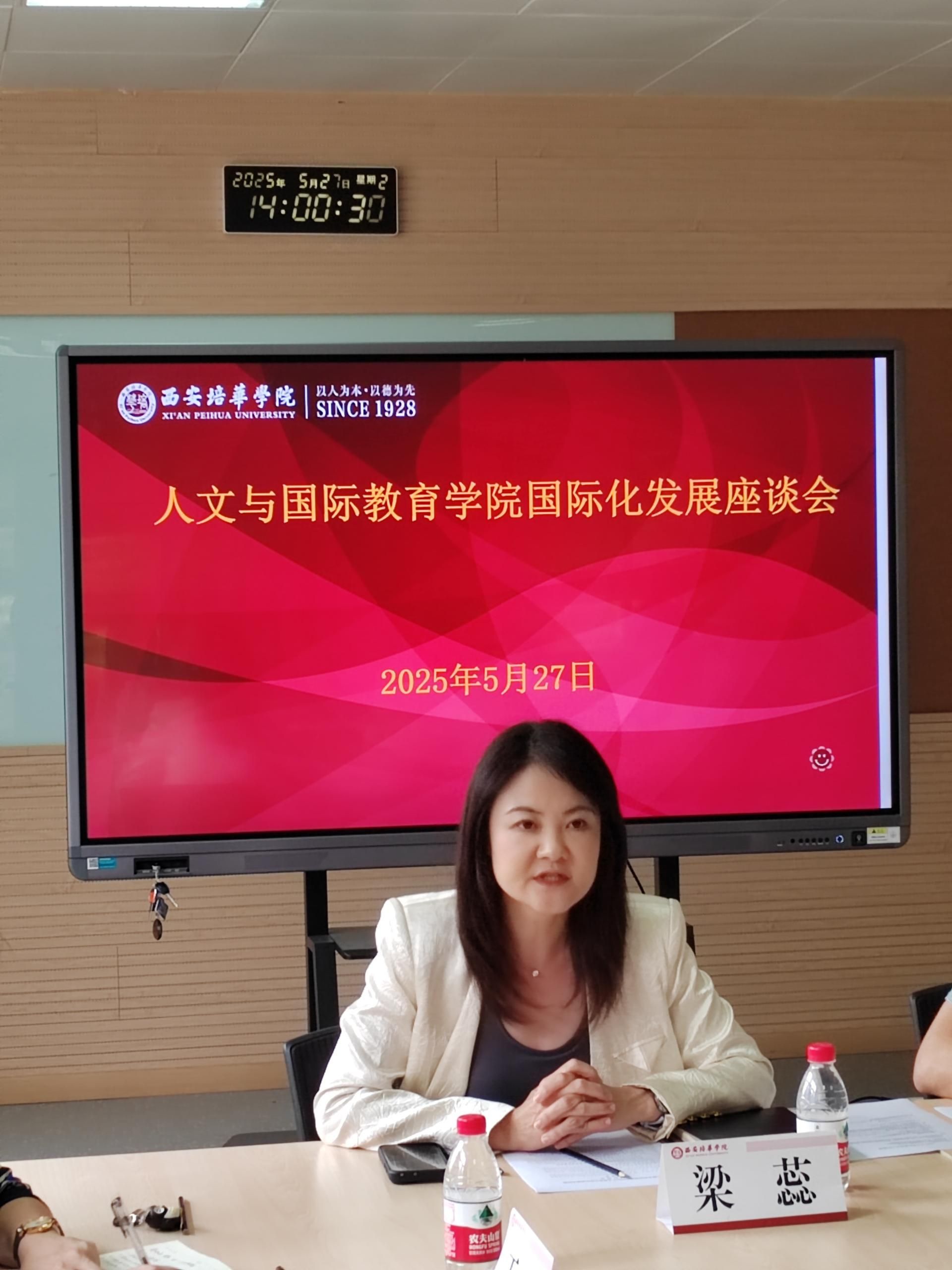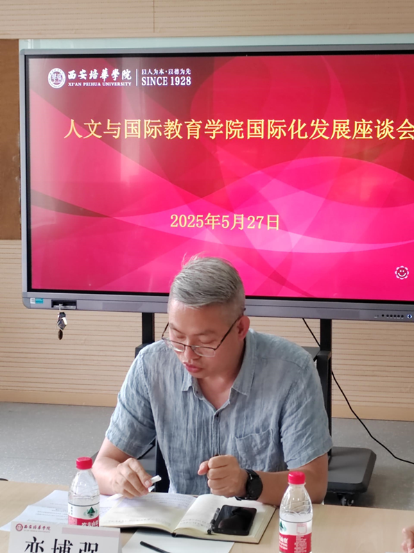 2025年5月27日下午,人文与国际教育学院在格物楼1209会议室召开国际化发展座谈会。会议由人文与国际教育学院教学副院长栾博强主持,西安培华学院国际校长李华﹑国际交流中心主任王鹏﹑人文与国际教育学院院长梁蕊、各系部负责人以及国际化发展专员等10余人参会,共同探讨学院国际化发展路径,明确未来战略方向。