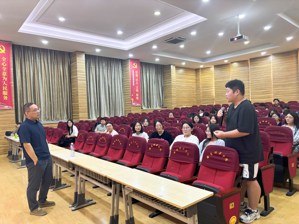 讲座后的问答环节,步洋洋教授仔细回答了学生提出的每一个问题。英语专业的同学就如何保持自律和执行力、如何攻克专四考试等问题虚心请教。步洋洋教授结合自身的学习生活的经历,以及学生时代的考试心得和从事法考辅导的心得给学生一一解答。