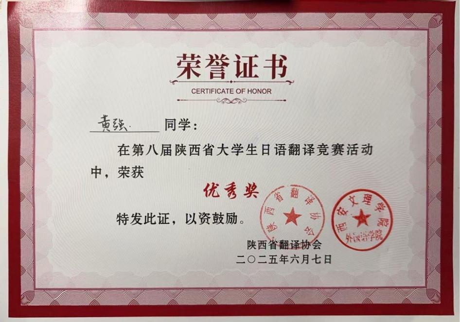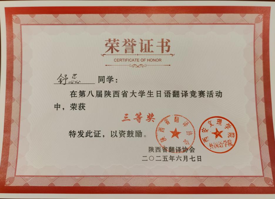 我校人文与国际教育学院外语系日语专业2022级舒蕊同学获三等奖,日语专业2022级黄强同学获得优秀奖。今后日语专业将持续深化日语专业教育教学改革,强化校际合作与行业交流,创新实践教学模式,着力提升学生翻译实践能力与跨文化交际水平,为培育更多高素质、专业化日语翻译人才奠定坚实基础,为推动区域外语教育事业高质量发展贡献积极力量。