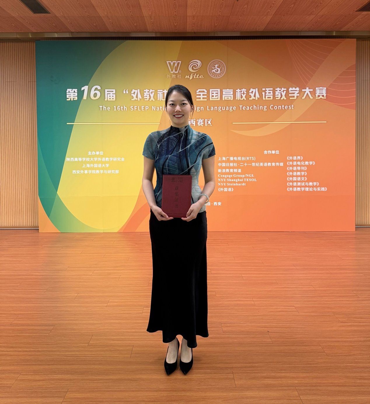 在6月21日-22日举办的第十六届“外教社杯”全国高校外语教学大赛(大学英语组)陕西赛区复赛和决赛中,人文与国际教育学院外语系教师程文和张欣宜代表学校参赛,取得优异成绩,分别获得视听说组一等奖和综合组三等奖。创下该赛事历史新高。