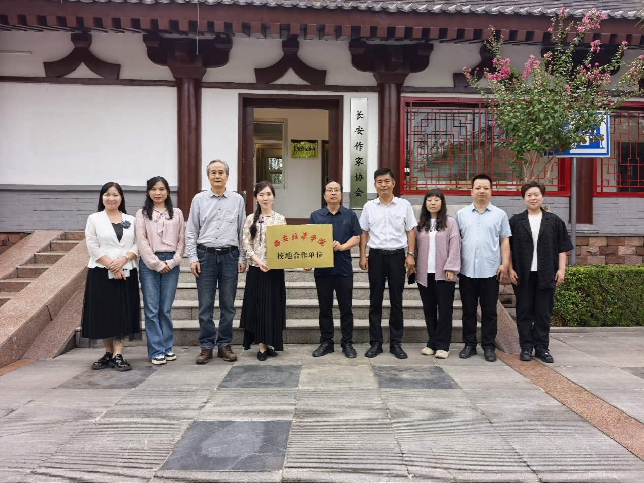 2025年9月10日,人文与国际教育学院中文系仵埂教授、中文系主任张萍、副主任朱红梅、副主任贾昆诺、教师代表崔雅男老师一行,赴长安作家协会,举行校地合作单位挂牌仪式。长安作家协会主席张军峰、副主席张立,长安区文联主席王宏,《艺术长安》主编刘欢等参加了本次活动。