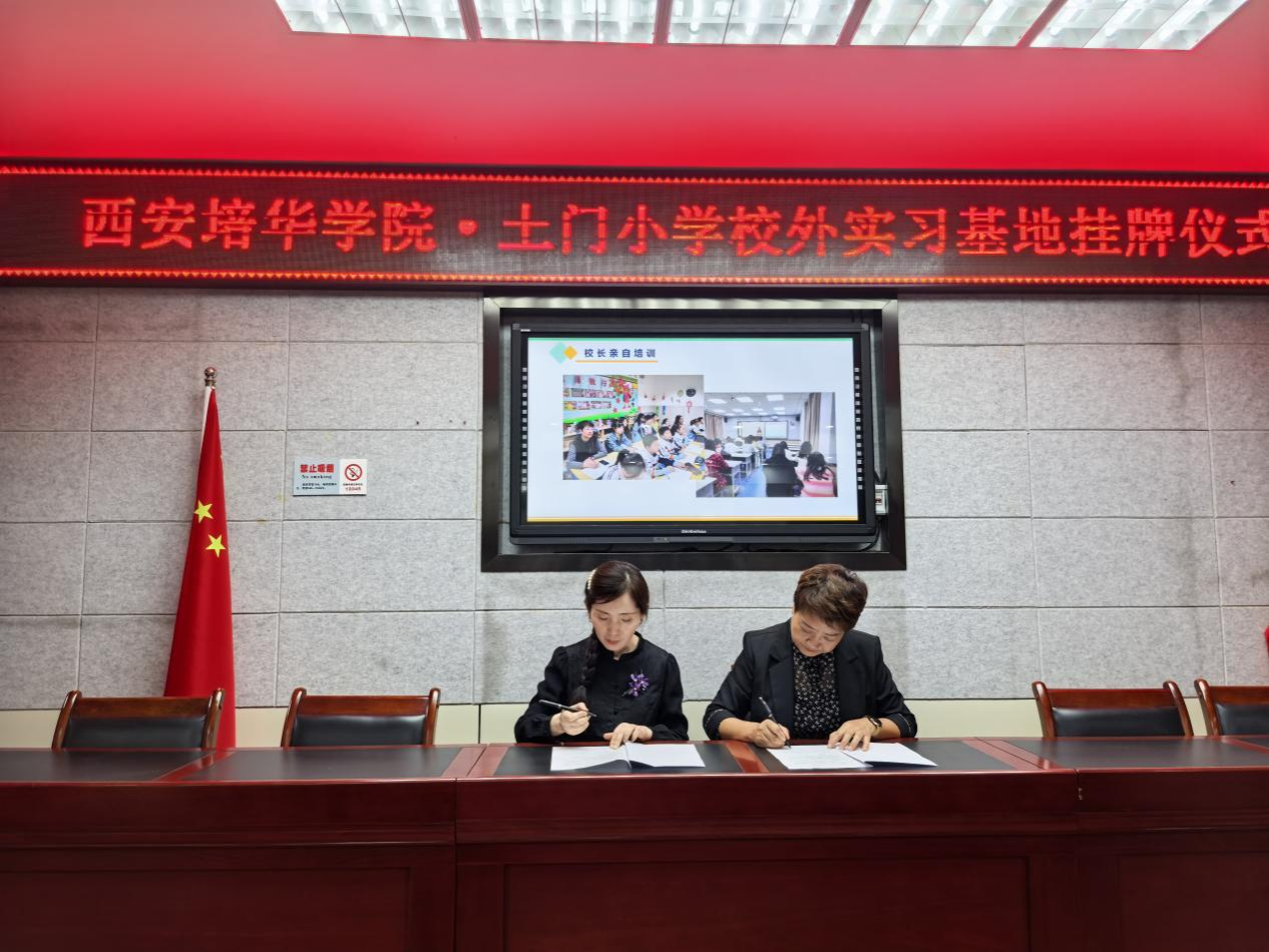 仪式最后,中文系主任张萍与土门小学校长张瑛共同签署了校外实习基地协议书并加盖公章。一纸协议,凝聚着双方的共识与承诺,为后续长期合作奠定了坚实基础。
