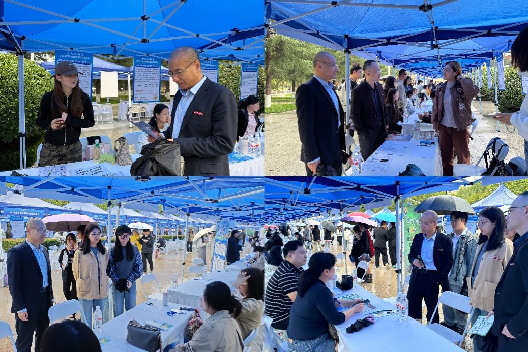 外语系主任李建勇带领外语系毕业班学业导师金培玉、任洪雨和袁琳老师,走访多家与外语专业相关的用人单位展位,与负责人就当前外语人才市场需求、岗位能力要求以及校企合作可能性进行了深入探讨。李主任与部分重点用人单位互留了联系方式,并初步商定将就学生实习、校园专场招聘会等事宜进行后续深度对接。