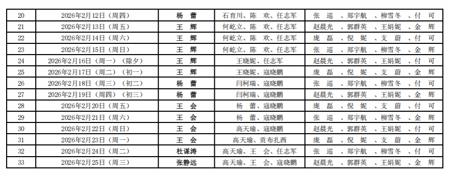 2.如有特殊情况需要调班,请提前协商好调班人员,提前一天向带班领导和办公室报备;