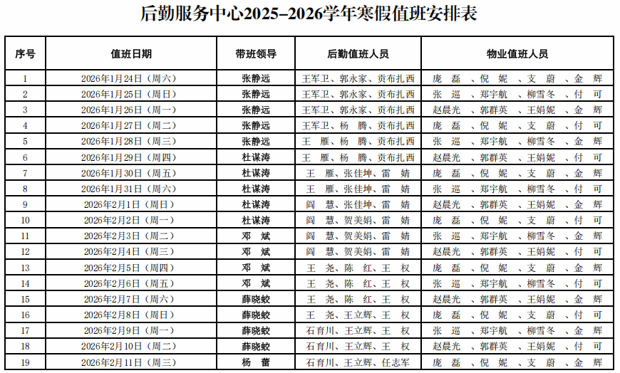 1.值班老师须到按时到岗并在后勤一站式服务大厅签到并填写值班记录,如有工作需要离开大厅,请保持个人电话畅通;
