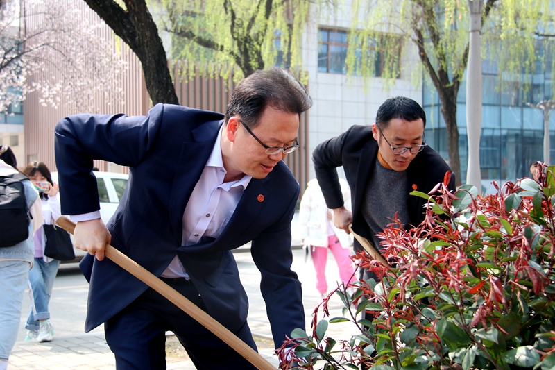 2021年3月12日中午,西安培华学院第43个植树节活动,在创客中心门前广场举行。植树地点位于沁园餐厅东侧,本次活动由后勤服务中心组织实施,姜波理事长及全体校领导,各院(部)中心负责人及学生代表200余名参与。活动仪式上理事长做动员讲话:美化校园,人人参与,绿色校园 ,你我同行。
