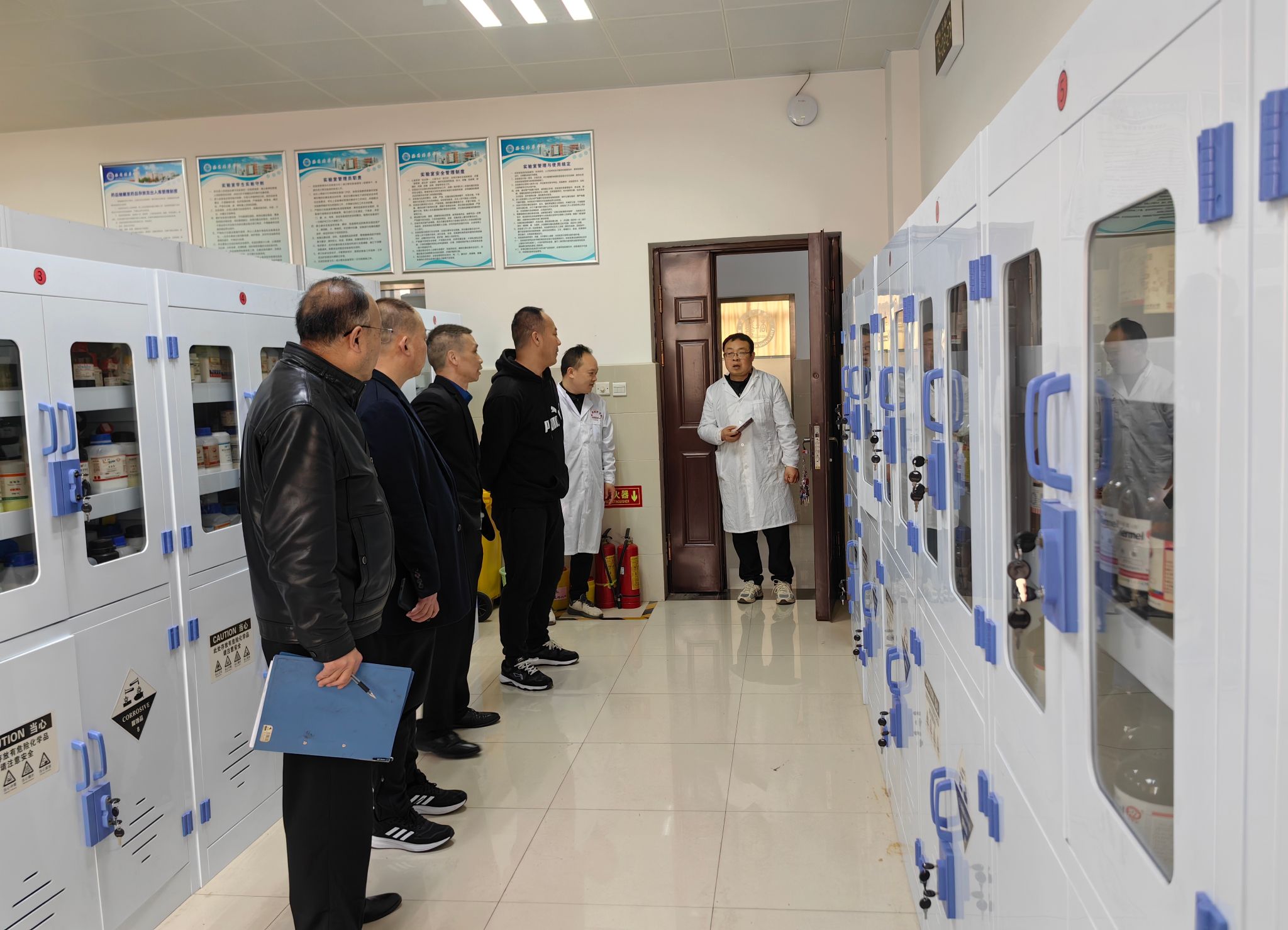 检查组还对学校实验室进行了专项检查,针对实验室消防设施、实验仪器设备、实验操作规程、危化实验药品存放及安全管理进行了专门检查。对问题明确责任人并进行现场整改,确保校园稳定安全。