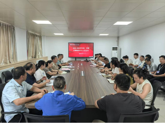 后勤各工作组主管汇报2025年上半年工作情况和暑期工作计划;王辉助理聚焦楼宇包干工作,提出要深入基层强化沟通,优化服务;杜谋涛助理解读了《后勤服务中心公文收发管理办法(试行)》,并部署毕业典礼、毕业生离校及校园开放日等工作。