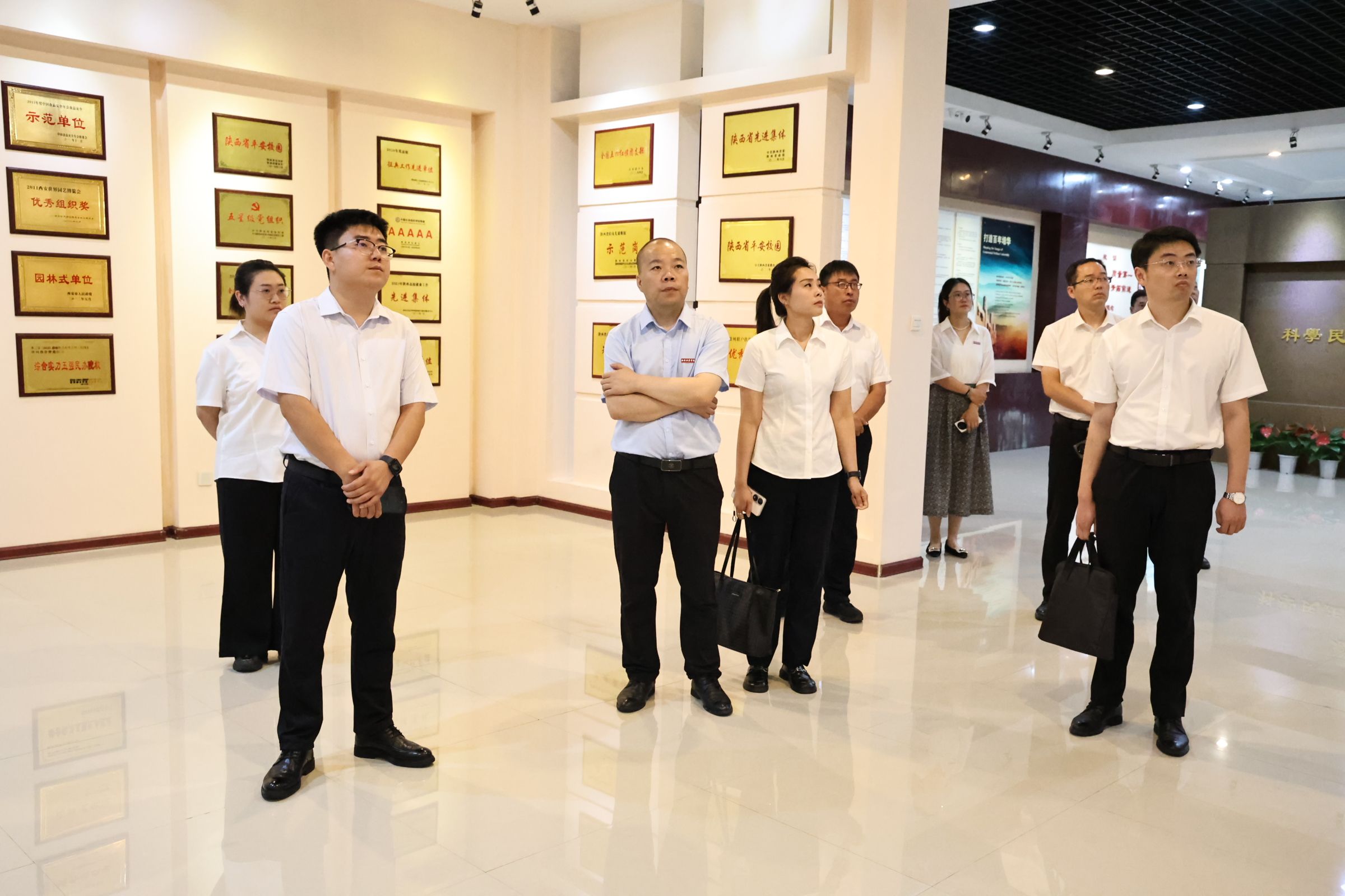 首先,崔博处长一行依次参观了校史馆、红旗广场、学生宿舍样板间、学术交流中心,详细了解西安培华学院的办学历史、发展成就以及丰富的校园文化建设的成果,对学校后勤管理模式、红色基因氛围及学生综合素质培养给予了高度评价,认为相关经验做法具有很强的借鉴意义。