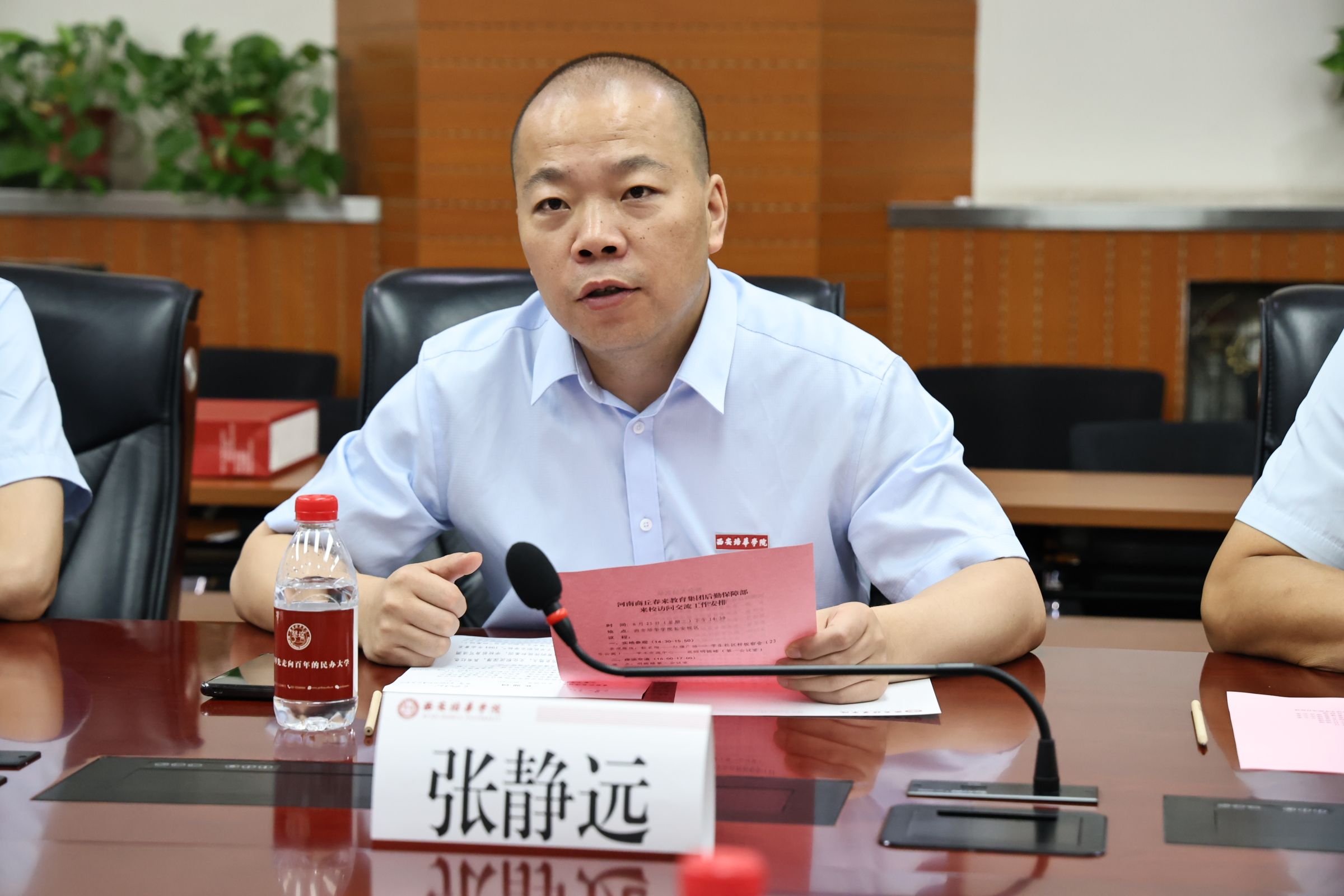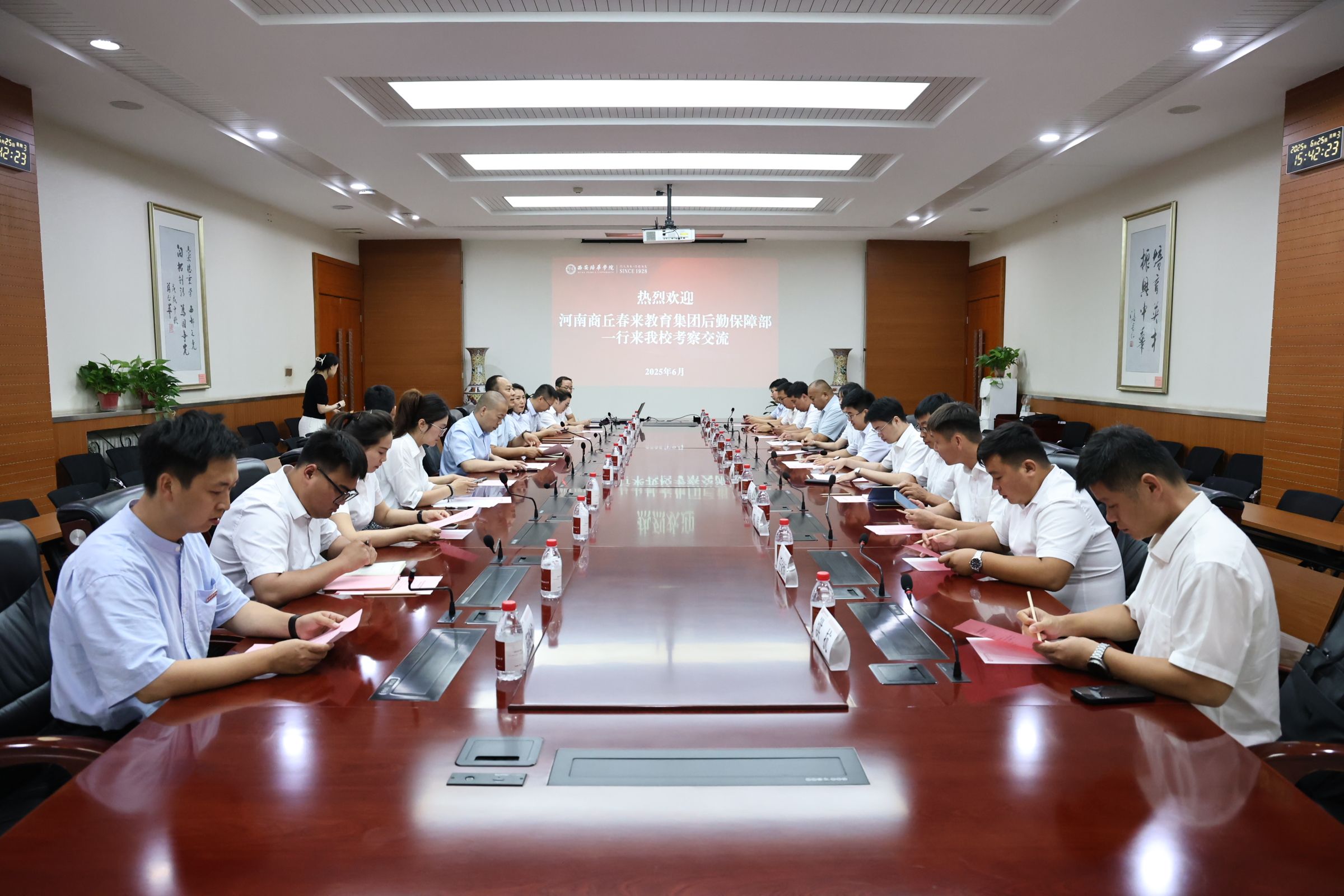 参观结束后,双方进行了座谈交流。张静远主任对春来教育集团后勤保障部一行的到来表示热烈欢迎,并介绍了学校的基本情况和后勤管理方面的特色亮点工作。他表示,西安培华学院后勤服务中心本着“愿做事、能顶事、敢抗事、善成事”的工作宗旨,一直致力于为全校师生提供更加高效、便捷、优质的后勤保障服务,希望通过此次交流能够相互学习、共同进步。