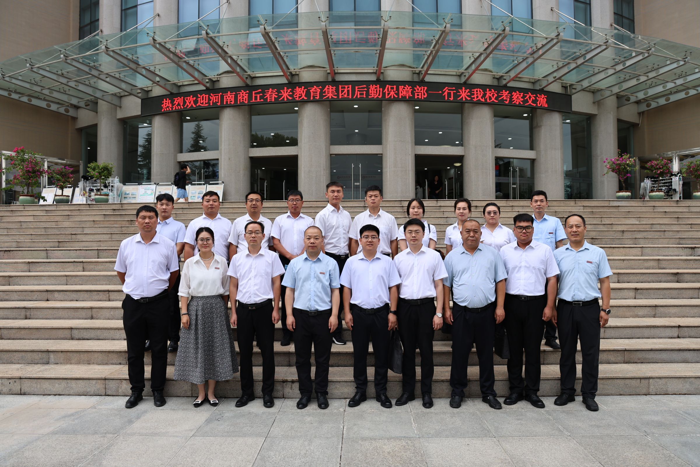6月25日下午,春来教育集团后勤保障部崔博处长一行15人来我校调研交流。我校后勤服务中心主任张静远、主任助理杜谋涛陪同参观并座谈。