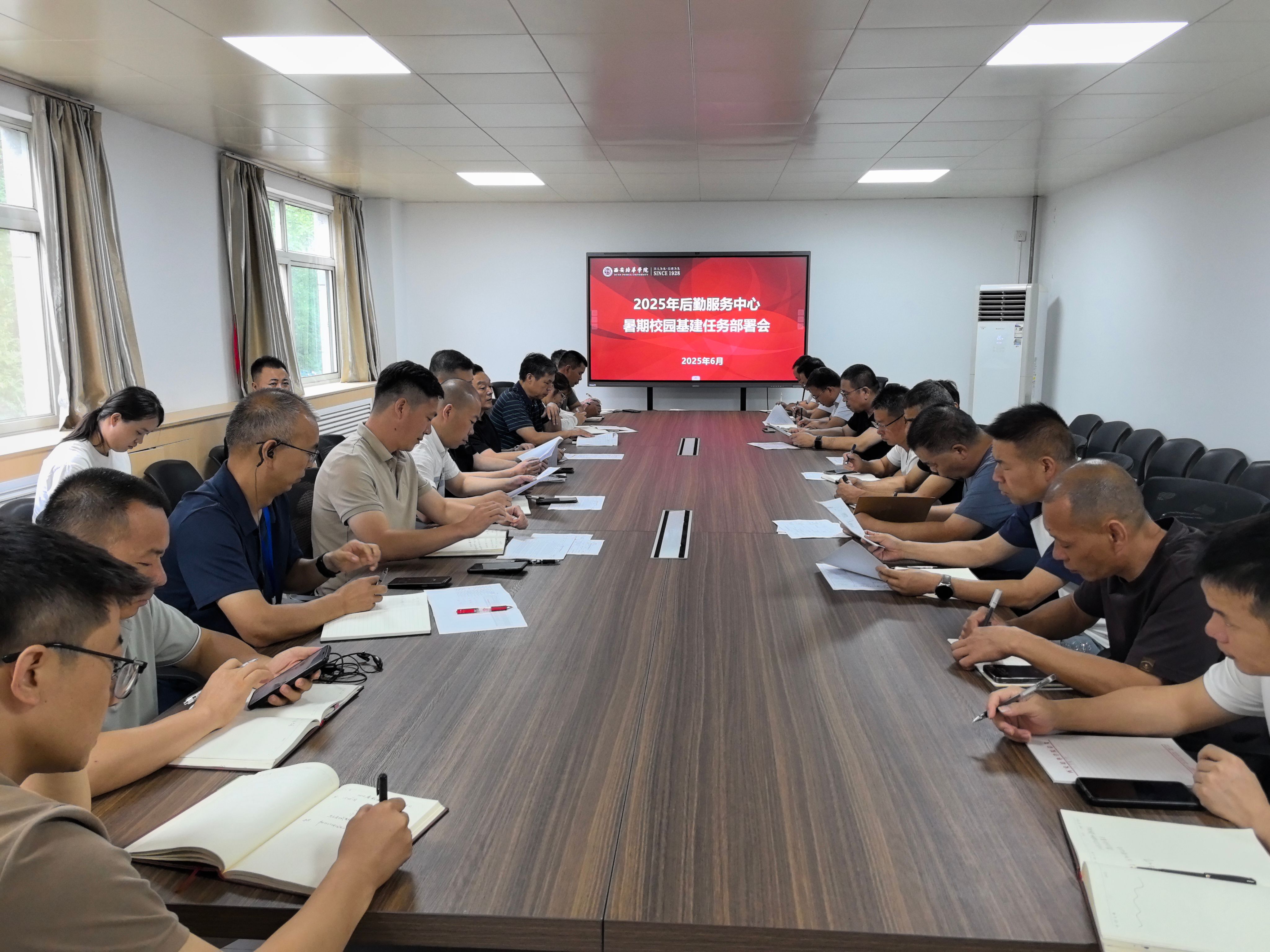6月30日上午,2025年暑期校园基建任务部署会议在后勤会议室召开。学校党委委员、校长助理姜涛、后勤服务中心主任张静远、主任助理王辉,学生管理中心、合作发展中心、鼎盛物业、监理单位、施工单位等部门参加会议,会议由王辉助理主持。