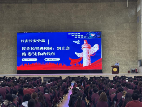 为切实提高我校2025级新生反诈意识和识骗防骗能力,9月18日下午,后勤服务中心邀请西安市公安局长安分局反诈中心在体育馆举行2025级新生反电诈宣传教育,师生代表约3500人参加。本次宣讲得到中国银行长安区支行和住校民警胡鹏魁警官的大力支持。