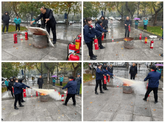 在演练环节,后勤服务中心任志军老师演示了灭火毯“一铺、二盖、三压、四熄”操作步骤,而后展示了干粉灭火器“一看、二摇、三拔、四喷”使用方法。参训部分人员模拟火源进行实地操作,进一步掌握初期火灾的灭火技能。