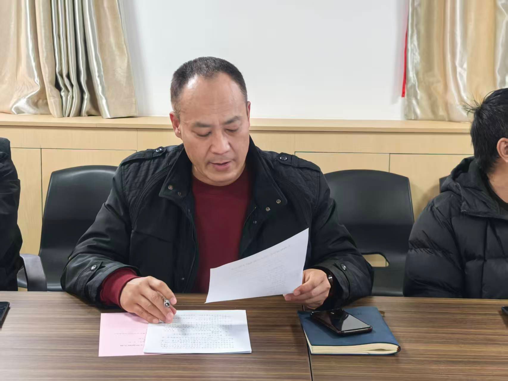 主任助理杜谋涛宣读中心年度考核工作方案并着重强调两项核心内容:一是将申硕工作推进成效纳入考核重要指标,以此压实责任、激发全员攻坚动力;二是部门进行互评打分,本年将师德师风互评作为考核环节,通过互评互鉴强化师德建设,确保考核既锚定发展目标,又守住育人底线。