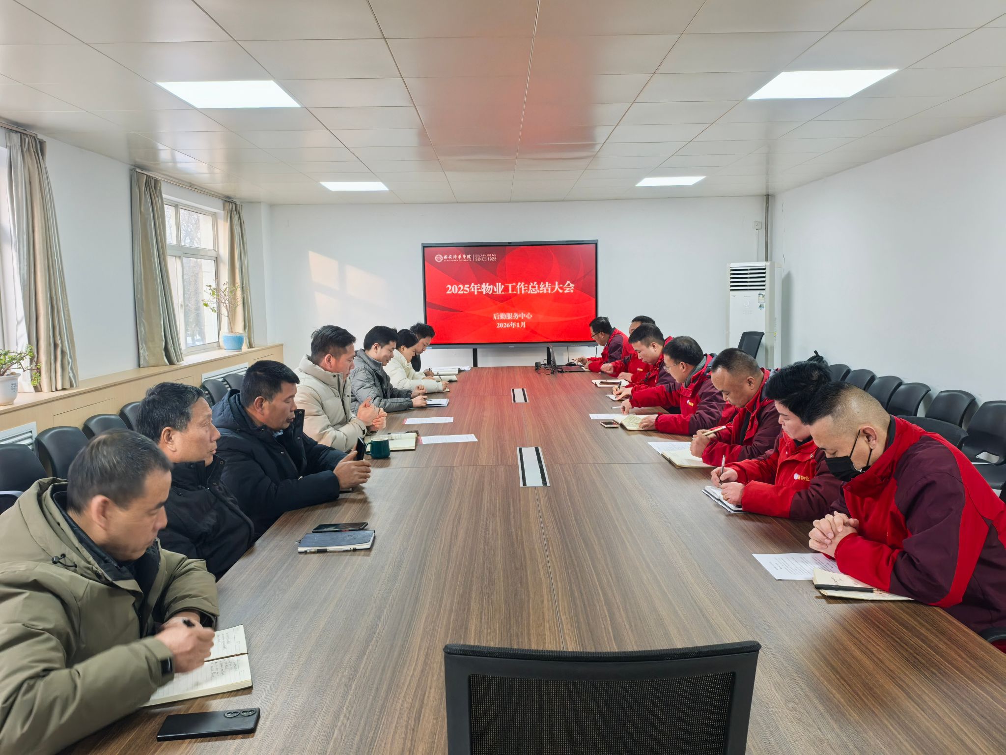 为全面总结2025年物业服务工作成效,梳理存在问题,明确2026年工作方向,进一步提升校园物业服务质量与保障水平,1月21日上午9:00,在后勤服务中心二楼会议室召开 2025 年物业服务工作总结大会。会议由杨蕾老师主持,后勤服务中心主任助理杜谋涛、王辉、各工作组负责老师及物业公司主管参会。