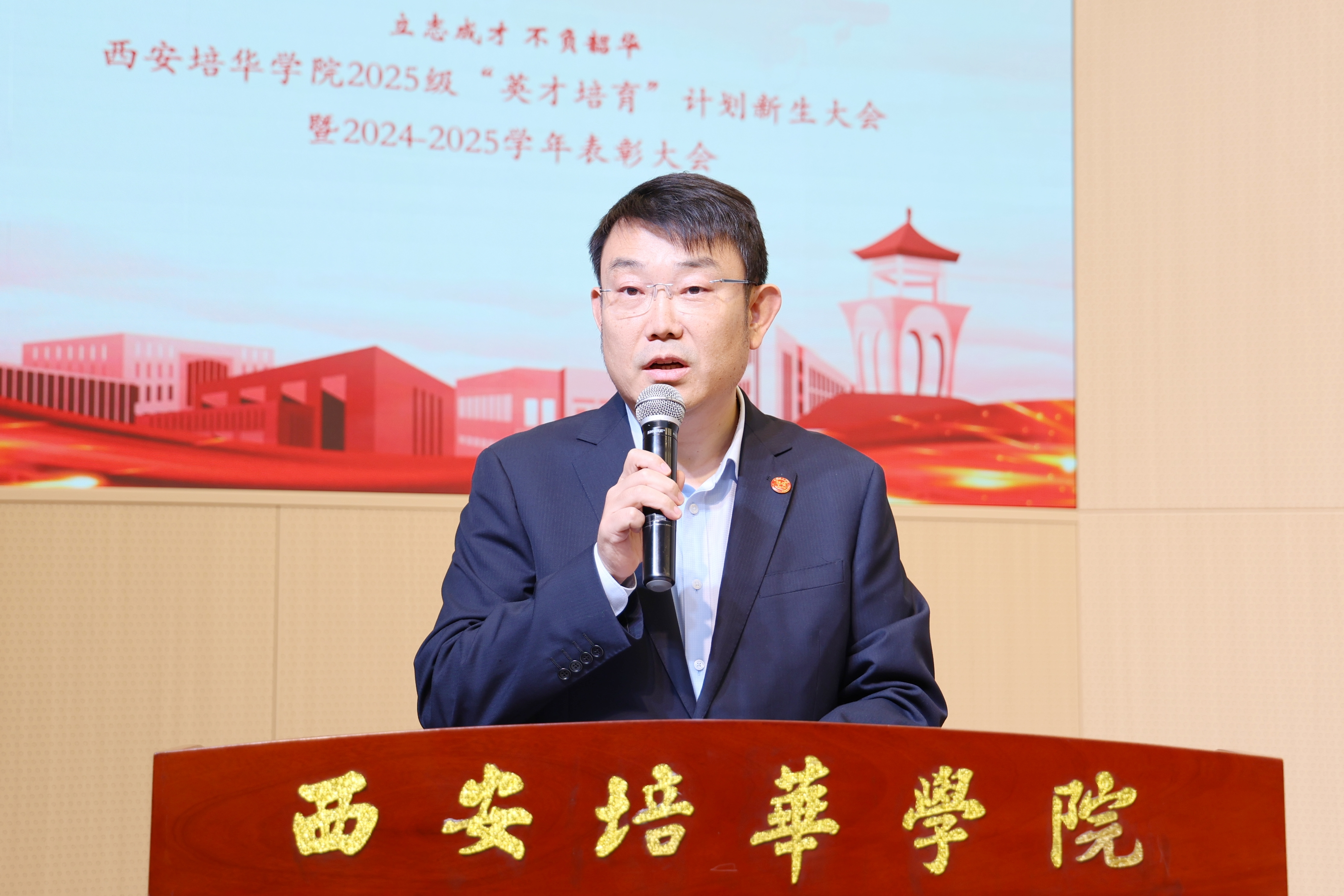 为进一步落实“英才培育”计划,提升教学质量与学生综合素质,9月18日,学校在明德楼四楼报告厅举行西安培华学院2025级“英才培育”计划新生暨2024-2025学年表彰大会。常务副校长胡俊生,教务管理中心主任铁卫,学生服务中心主任权勇太,教务管理中心副主任刘改琳、主任助理孟倩,校团委书记董莹,各二级学院党委书记、教学副院长、“英才培育”计划干事、专任辅导员及师生代表约700人参加了会议。本次会议由校长助理鲍伟主持。