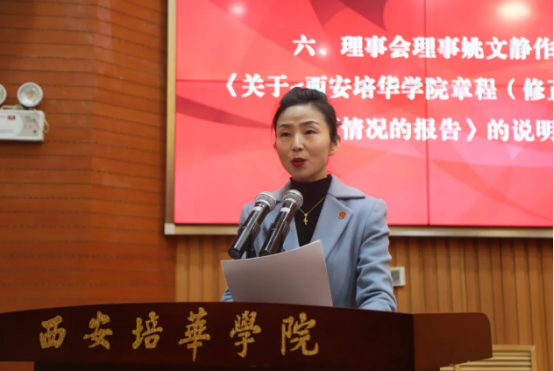 理事会理事姚文静作《关于<西安培华学院章程(修正案)>修订情况的报告》的说明