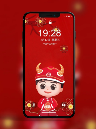 新年到,福也到。小华手捧“福”字,以俏皮的孩童形象如福娃般带来祝福,背景的花朵开得正艳,正如他带给大家的祝福:花开富贵,灯照吉祥。