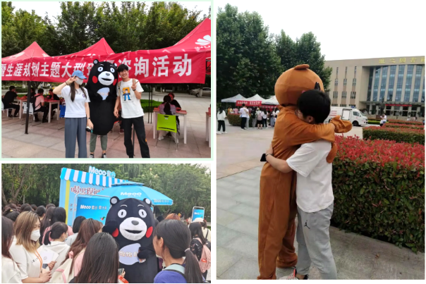 活动中最引人瞩目的要数我们的团宠熊本熊,路过的同学们纷纷上前拍照合影,给予爱的拥抱,熊本熊妖娆的身姿活跃了现场气氛,为活动增添了许多欢声笑语。