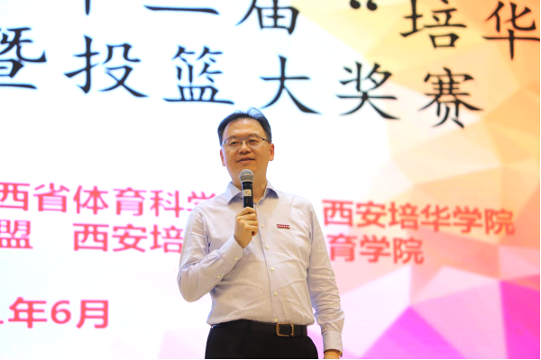 西安培华学院理事长姜波士为本次“培华杯”创新篮球赛致闭幕词,他说“培华杯”走过了十二个年头,现在已成为品牌赛事。一路走来,离不开省上各级领导的支持及广大篮球爱好者的坚持,他希望培华的明天像“培华杯”篮球赛事一样越办越好。
