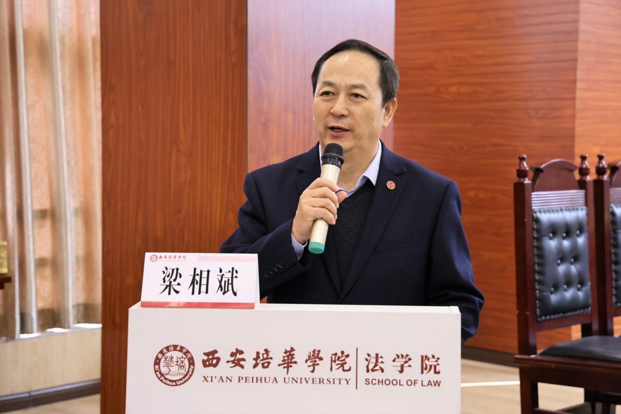 为了深入学习贯彻党的二十届四中全会精神,全面落实“十五五”规划关于法治建设的决策部署,切实提升师生法治素养与理论水平,2025年12月8日下午,在法学院模拟法庭,西安培华学院特聘教授梁相斌以“新时代‘枫桥经验’重塑中国社会基层治理模式——兼论大学法治人才培养方向”为题,深入分享了对基层治理创新与法治人才培养的独到见解。讲座由学校常务副校长胡俊生主持,法学院领导班子成员及部分师生共同参与。
