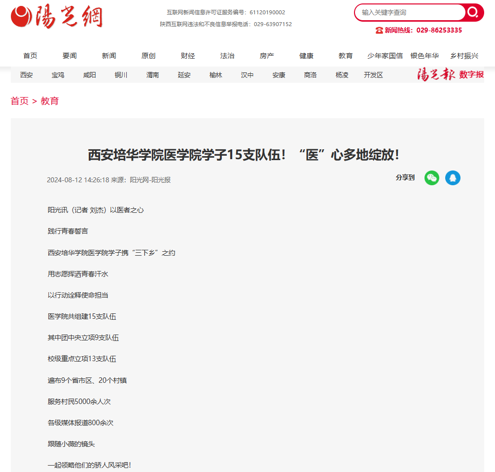 仁心筑梦队前往陕西省西安市长安区王曲街道光明路社区开展了为期10天的三下乡活动。活动中,实践队队员为社区村民提供艾灸、刮痧、拔罐、贴耳穴等服务,以调查问卷形式了解当地常见疾病,为幼儿园小朋友科普健康刷牙和用眼知识,参观柳青故居感受前辈精神,并志愿清理河道垃圾。这次活动让团队更深入了解到乡村健康问题,期待利用自身专业为乡村发展贡献培华力量。