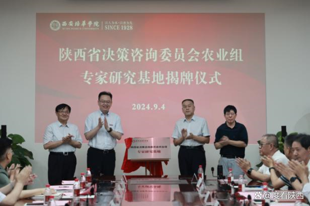 随后,在双方领导见证下,举行了陕西省决策咨询委员会民生组、农业组专家研究基地揭牌仪式。省决策咨询委员会副主任李进权,省决咨委民生组组长、陕西省社科院原副院长石英,省决咨委农业组组长、陕西村社发展促进会名誉会长郑梦熊,西安培华学院校长李映方分别揭牌。