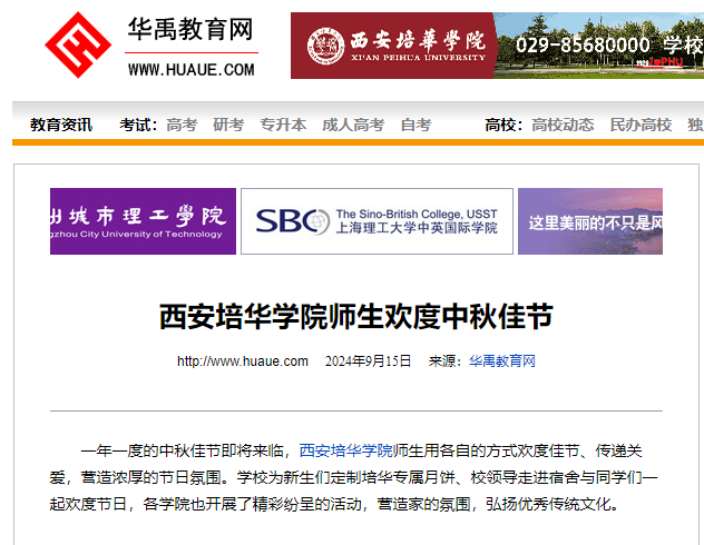 一年一度的中秋佳节即将来临,西安培华学院师生用各自的方式欢度佳节、传递关爱,营造浓厚的节日氛围。学校为新生们定制培华专属月饼、校领导走进宿舍与同学们一起欢度节日,各学院也开展了精彩纷呈的活动,营造家的氛围,弘扬优秀传统文化。