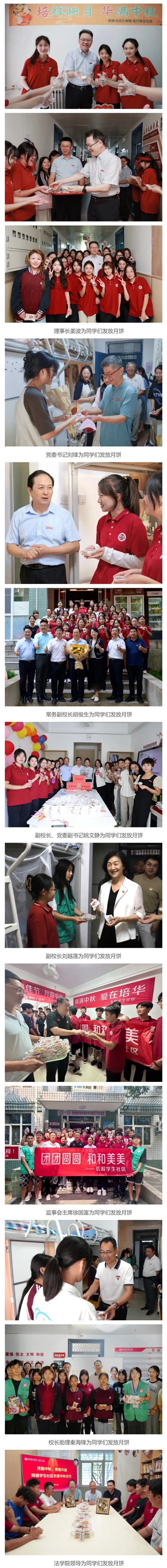 9月13日,全体校领导走进学生宿舍,与同学们一起体验制作月饼,还为大家送上了培华专属定制月饼,同学们也用热情与激动送出了最真诚的祝福“中秋快乐”!在宿舍里,校领导们与学生们亲切交谈,询问学习生活情况,倾听心声分享喜悦和困扰,并送上了节日的问候,将“以生为本”的教育理念落到日常当中。