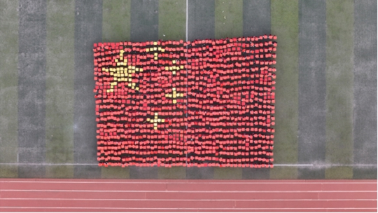 更令人激情澎湃、耳目一新的便是花样方阵的精彩表演。同学们以娴熟的动作时儿变换队形,排列成战斗机歼-20图案,展现我国傲人的军事实力;时儿排列出“1928”“1935”“1945”“1951”“1952”“1953”“1956”“1984”“2023”等数字,展示波澜壮阔的“七迁其史、九易其名”的校史,期待百年培华再绽新颜;时儿摆出“1949-2024”“国旗+75”“党徽”“国旗”的图案祝福伟大祖国生日快乐,展现出以吾辈之青春,捍卫盛世之中华的勇气与决心,把军事表演推向了高潮。