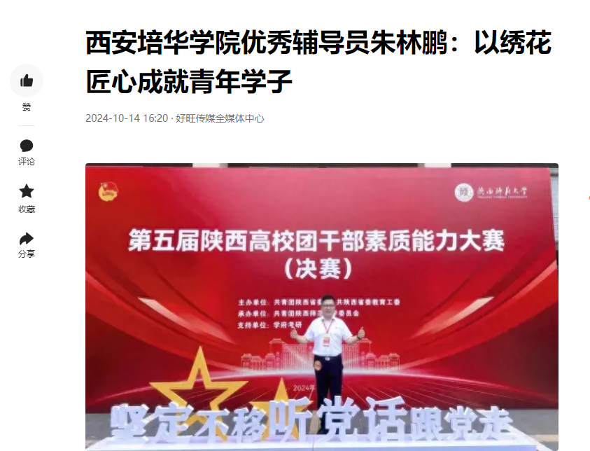 朱林鹏的故事,是每一位高校辅导员默默奉献的缩影。他用匠心筑梦,以爱育心,陪伴着每一位学生从青涩走向成熟,从迷茫走向坚定。在他的陪伴下,学生们学会了独立思考,学会了勇敢追梦,更学会了感恩和回馈社会。他用自己的行动诠释了什么是真正的教育者——不仅传授知识,更在于塑造灵魂,引领方向。