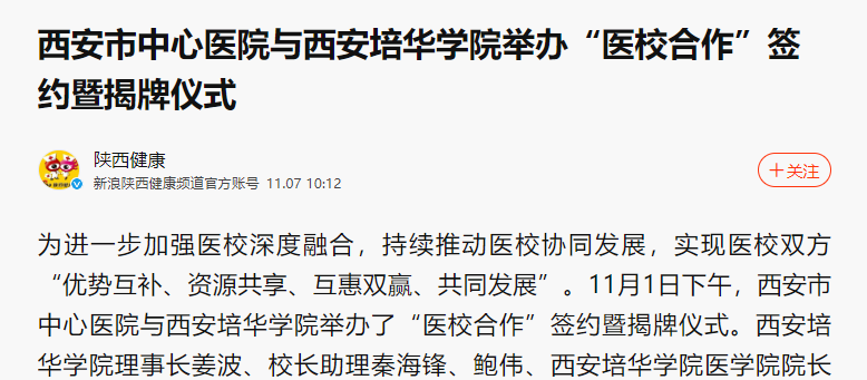 理事长姜波表示,西安市中心医院教学楼见证了西安的历史变迁,佐证了校院双方发展的不凡轨迹,是双方共同的精神传承和文化标志,学校愿与医院联手打造一个校院合作的红色标杆;同时在人才培养、科学研究、成果转化等领域进行全方位合作,实现双方共同发展。