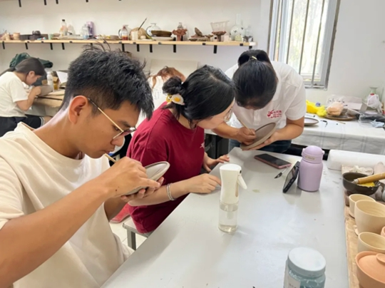 杭州“長亮”空间主理人李长亮,带领学子进行陶瓷器皿创新