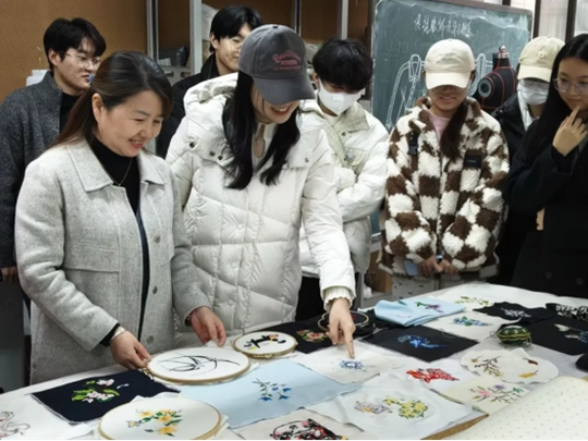 非遗传人王秀萍走进课堂,分享刺绣技艺