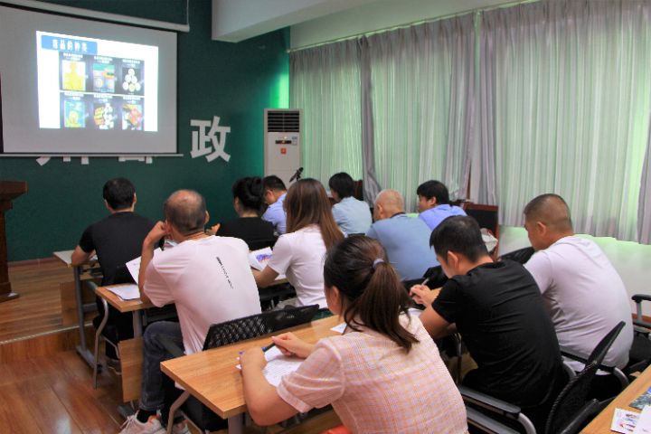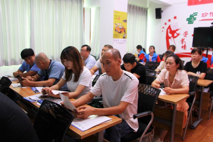图为正在认真听讲禁毒防艾知识的邮政工作人员。