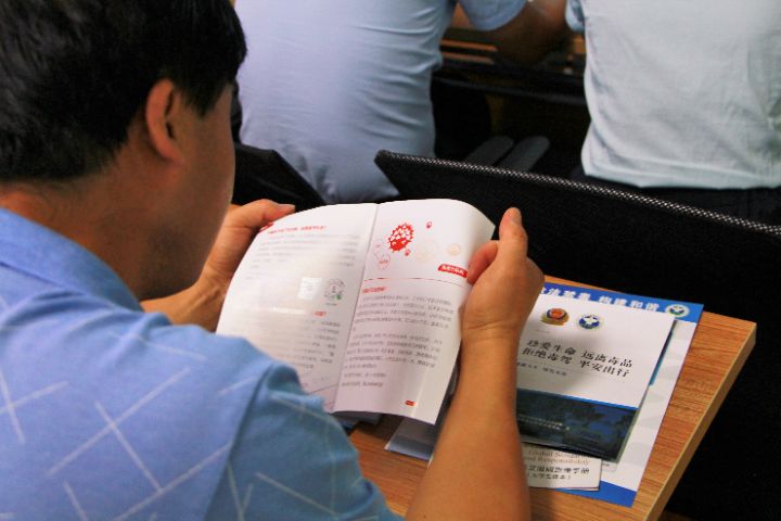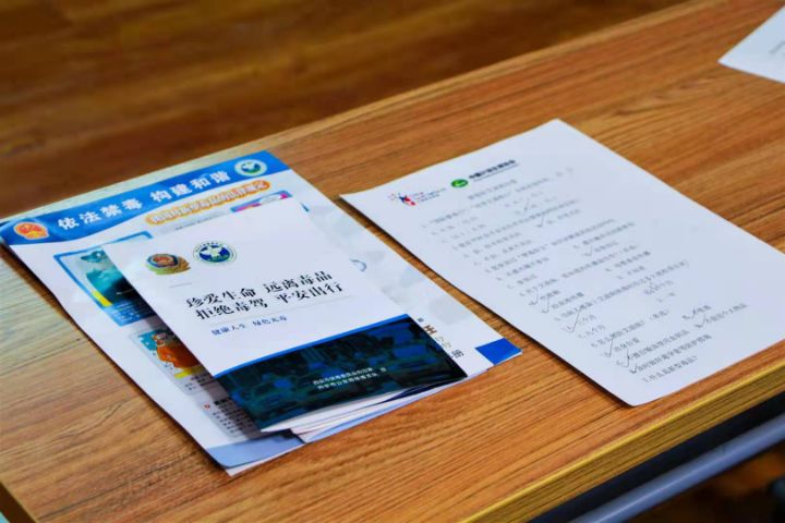图为禁毒防艾宣讲队准备的宣传手册和调查问卷。