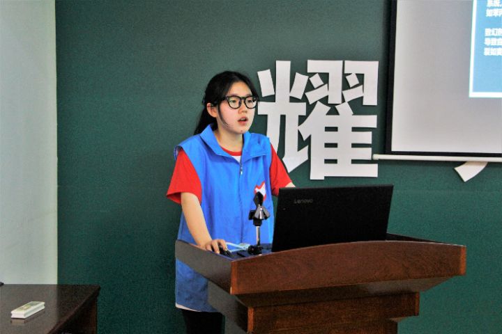 图为正在宣讲的禁毒防艾宣讲队成员。