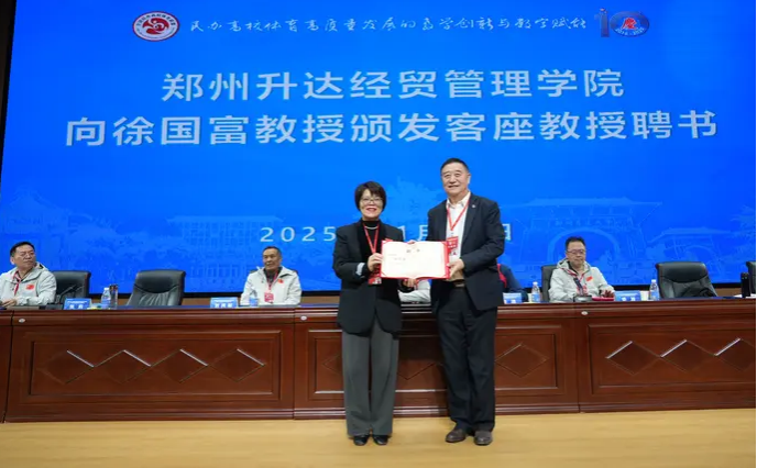 仪式现场,郑州升达经贸管理学院校长张欣与全国民办高校体育联盟理事长姜波博士互赠纪念品。这份互赠不仅承载着升达学院对联盟的诚挚谢意,更凝聚了双方深化合作、共促民办高校体育教育发展的美好愿景。